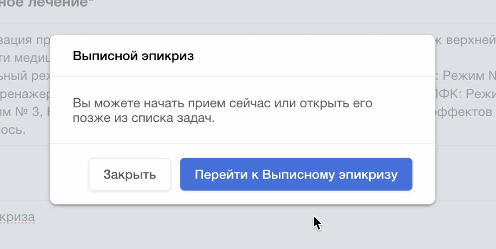 Выписной эпикриз можно заполнить отдельно от осмотра врача. Тогда его можно будет найти в разделе “Осмотры” обращения пациента.