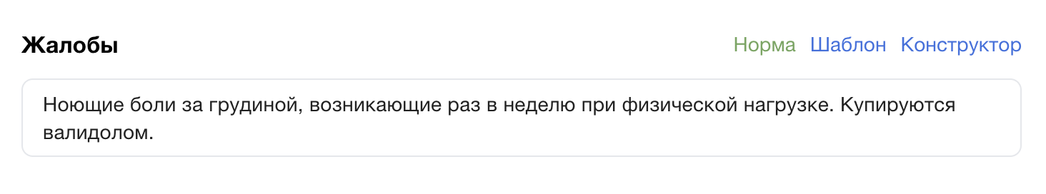 Физикальные поля при старте протокола могут автоматически заполняться значением Нормы, если такой шаблон задан для каждого поля.