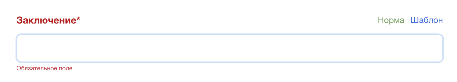 "Заключение" - поле для указания заключения специалиста по итогу осмотра.